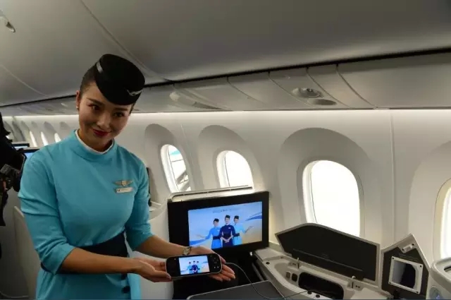 這架B787-9型飛機在客艙內可實現(xiàn)空地互聯(lián),旅客在飛機進入平飛狀態(tài)后,可利用電腦、iPad等設備連接客艙內Wi-Fi信號,體驗收發(fā)郵件、購物、微信等網(wǎng)絡服務。
