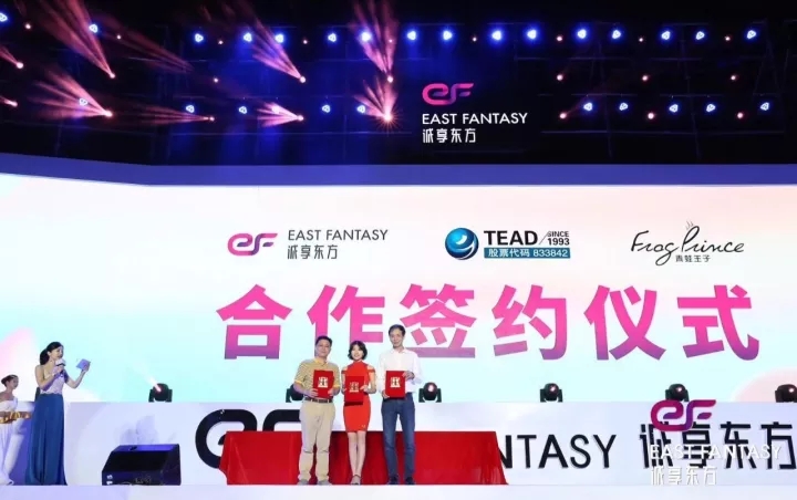 2017年10月21日,在誠享東方掛牌慶典晚會上,天藝傳媒攜手知名美妝移動電商——誠享東方,及國內領先日化企業(yè)——青蛙王子在廈門音樂島正式舉行簽約儀式。三方將在未來共同推出以“阿巴兔”為品牌形象的兒童護理系列產(chǎn)品。