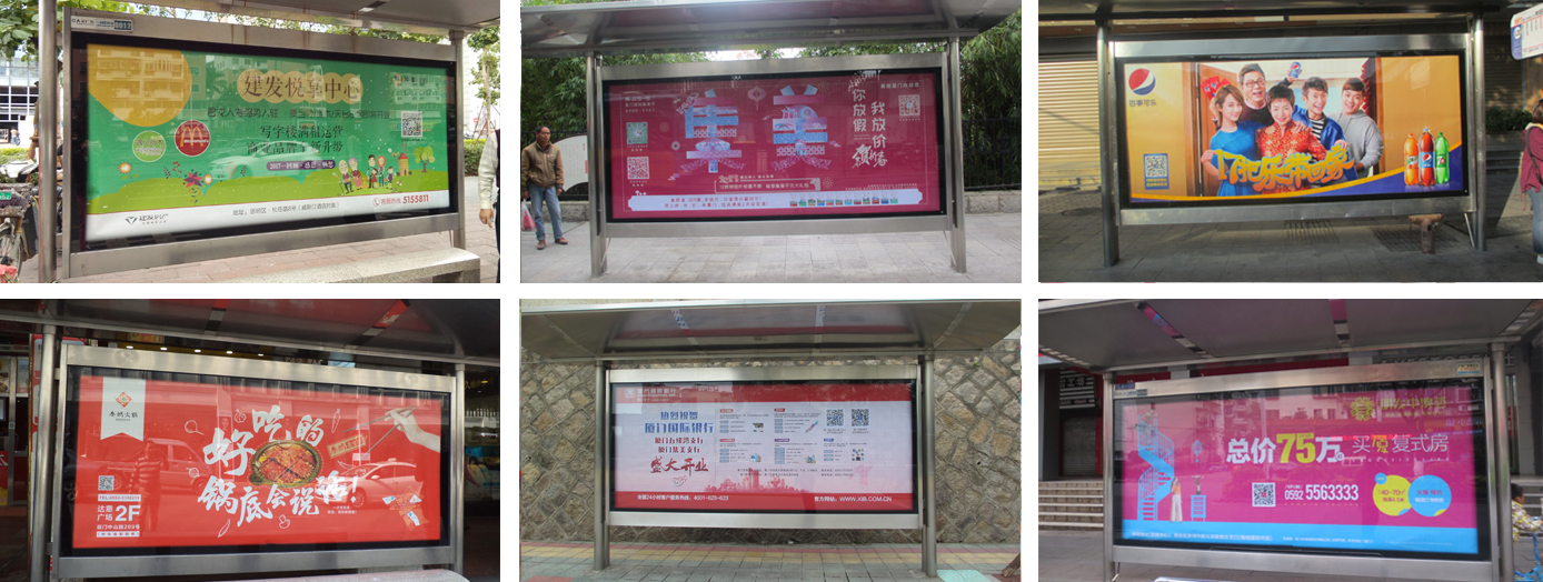 火車站廣告、公交候車亭廣告、停車場道閘廣告、公交巴士車身廣告、出租車、墻體廣告、地鐵廣告、三面翻廣告、陣地廣告以及在廣場中心大牌、電子顯示屏、購物商場的廣告屏等等,形式繁多。所以,當(dāng)消費者一出家門就可以被其影響到,進(jìn)而產(chǎn)生消費行為。